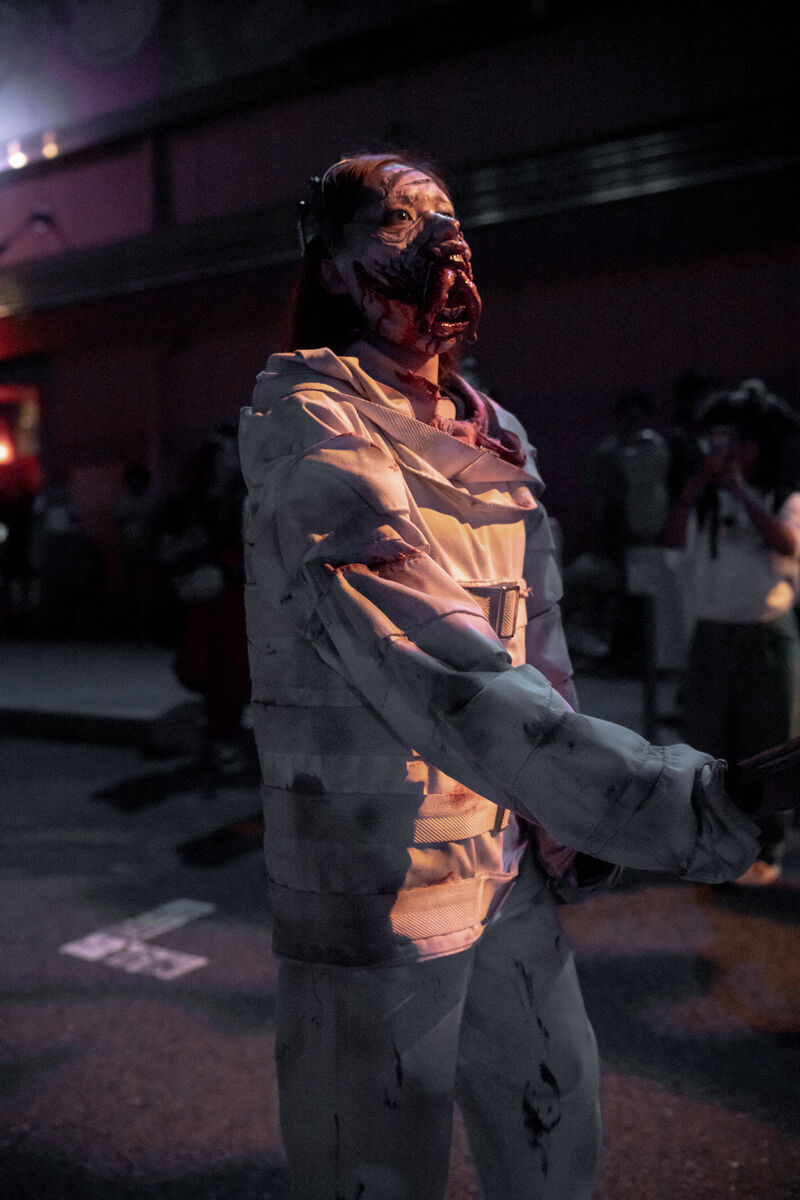 地面の道路を見てるとわかりやすいのですが、影になっている場所はISO感度8000でもちょっときついことがあるので、撮りたいゾンビがどのエリアにいるかにもよりますが、できるだけライトが当たってるところに撮りたいゾンビが来るのを待つのがポイント。